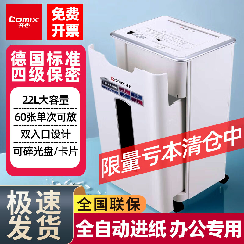 齐心碎纸机办公室专用4级保密全自动碎纸机S901大型自动进纸文件光盘卡片粉碎机资料低噪商用大容量碎纸机