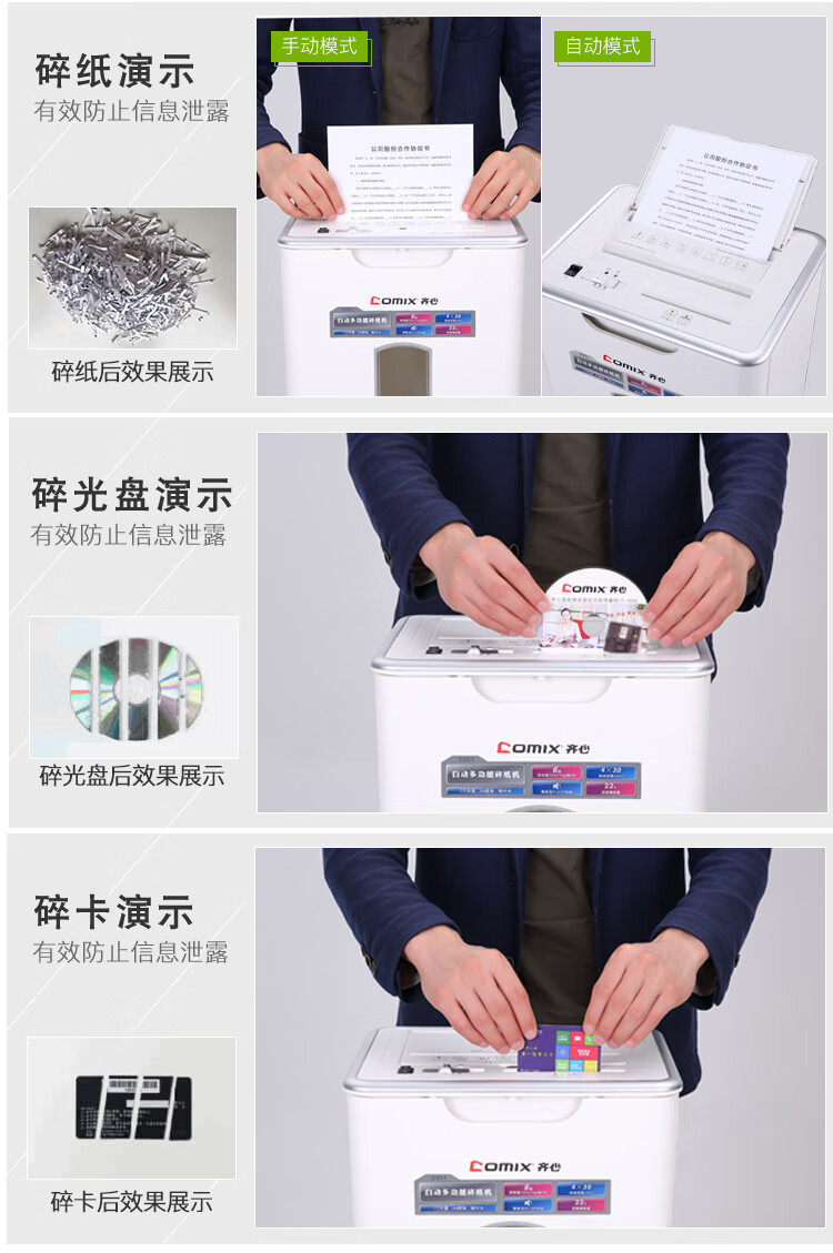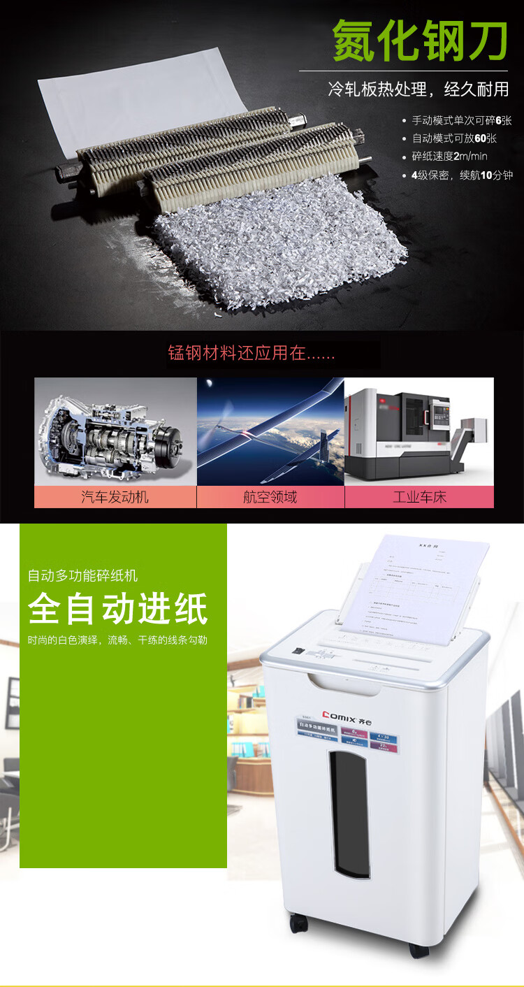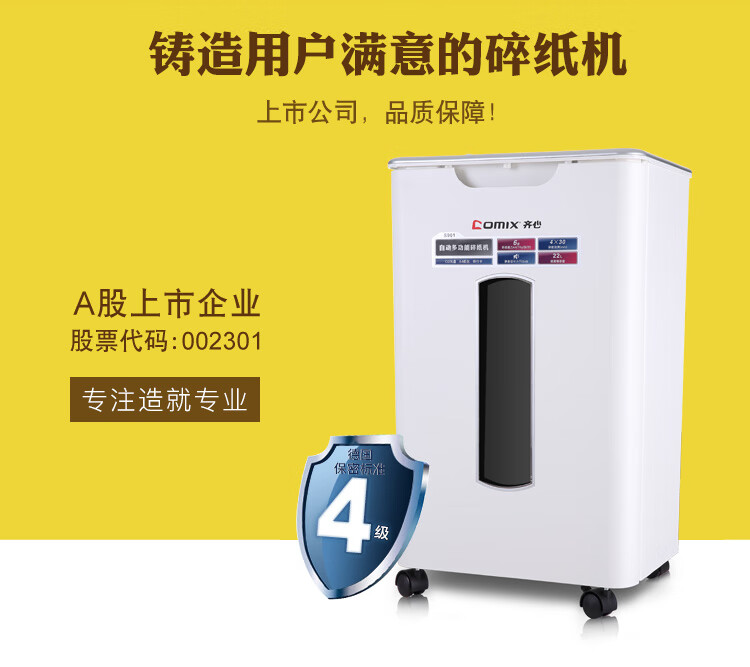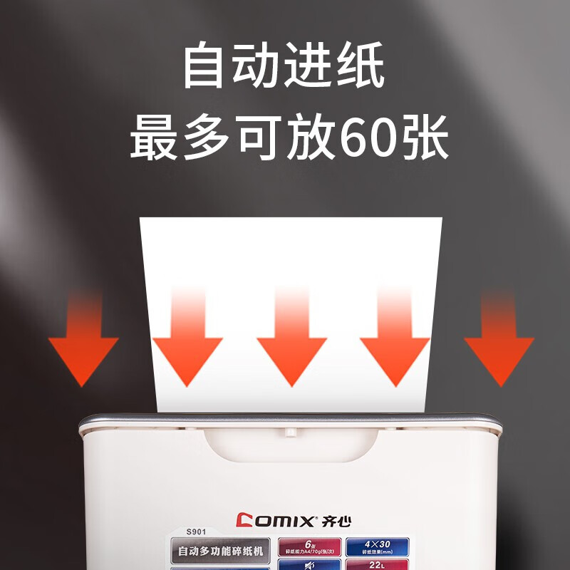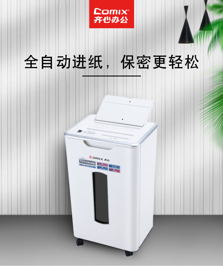 齐心碎纸机办公室专用4级保密全自动碎纸机S901大型自动进纸文件光盘卡片粉碎机资料低噪商用大容量碎纸机