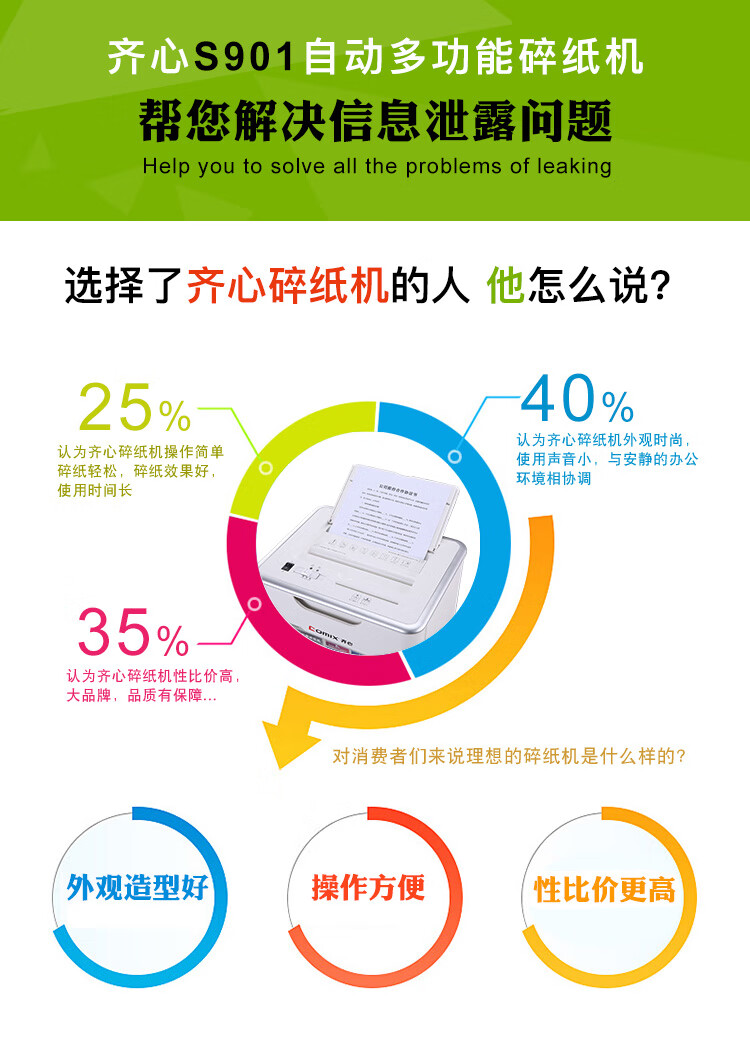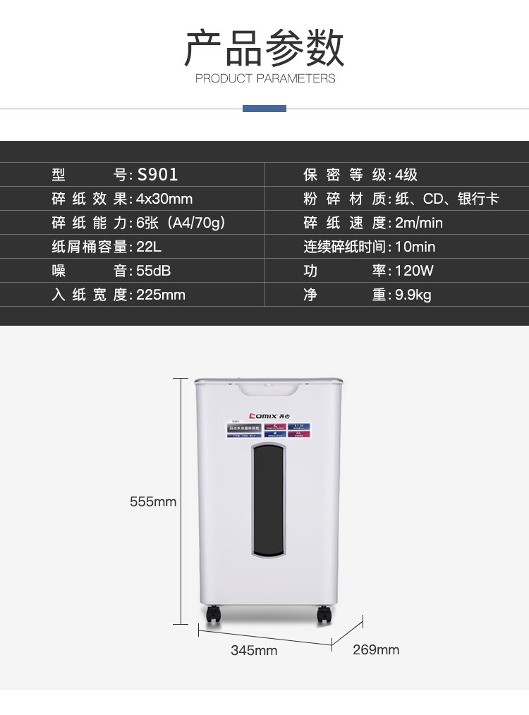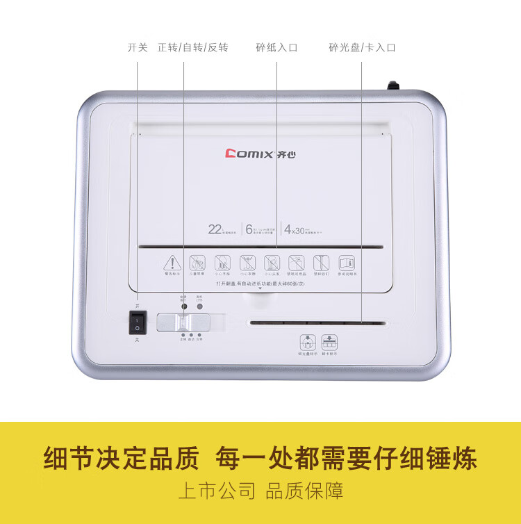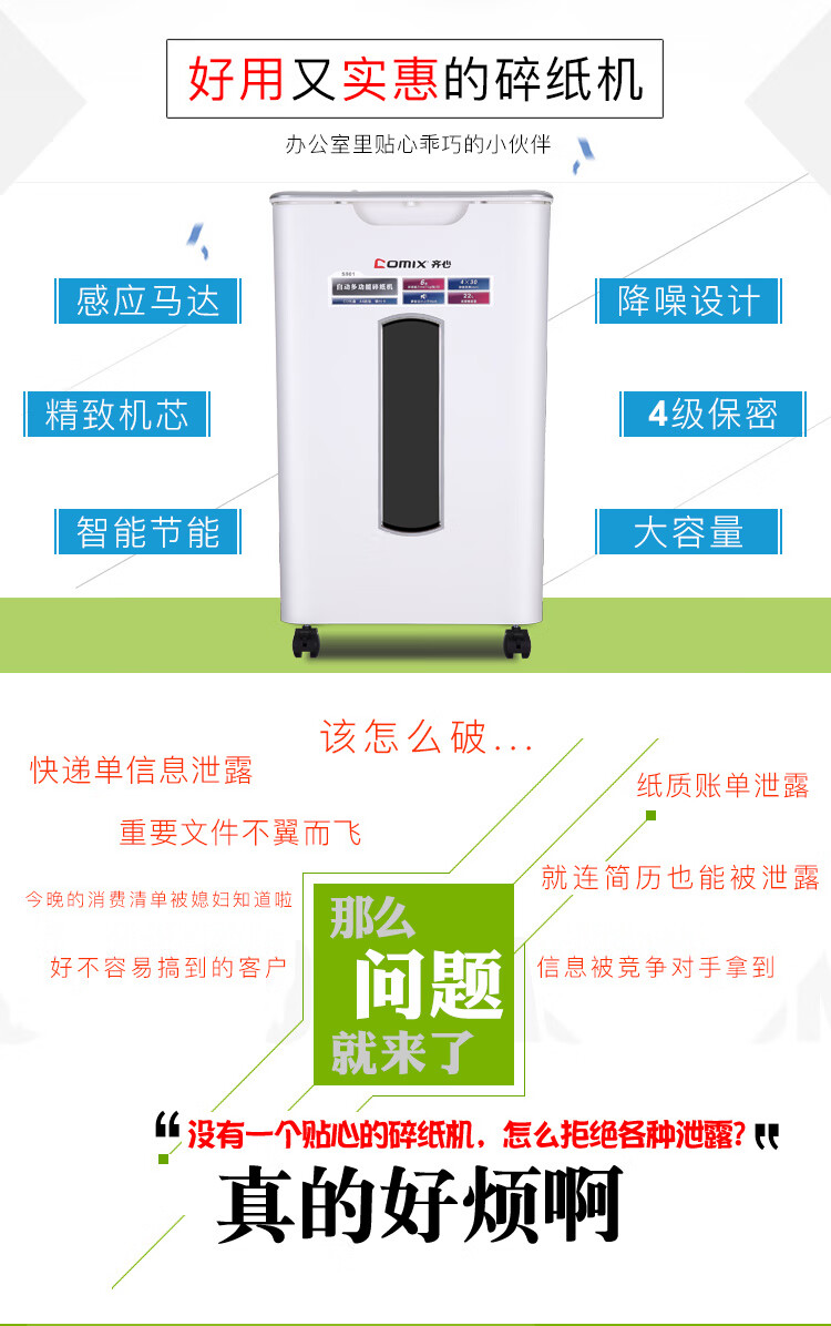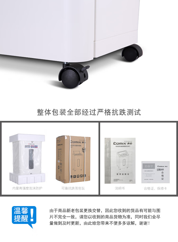 齐心碎纸机办公室专用4级保密全自动碎纸机S901大型自动进纸文件光盘卡片粉碎机资料低噪商用大容量碎纸机