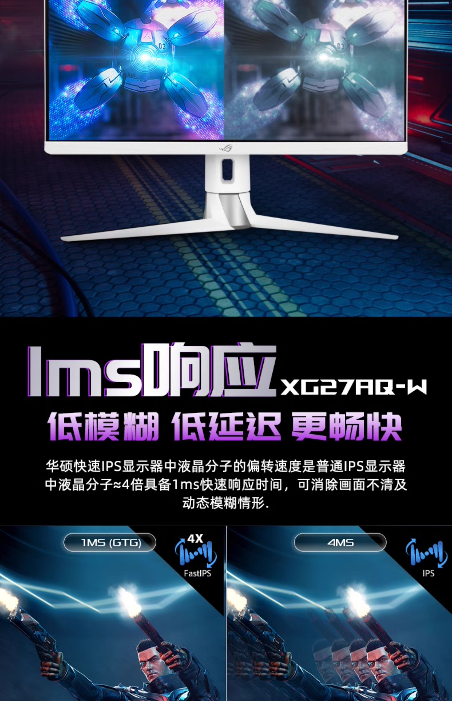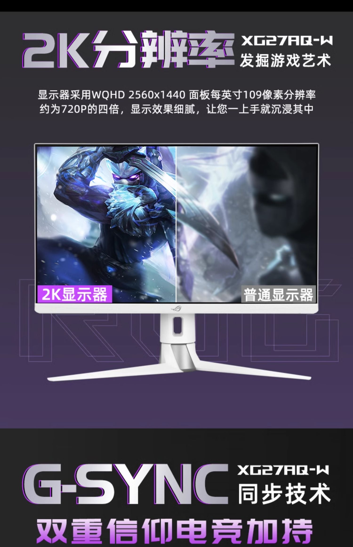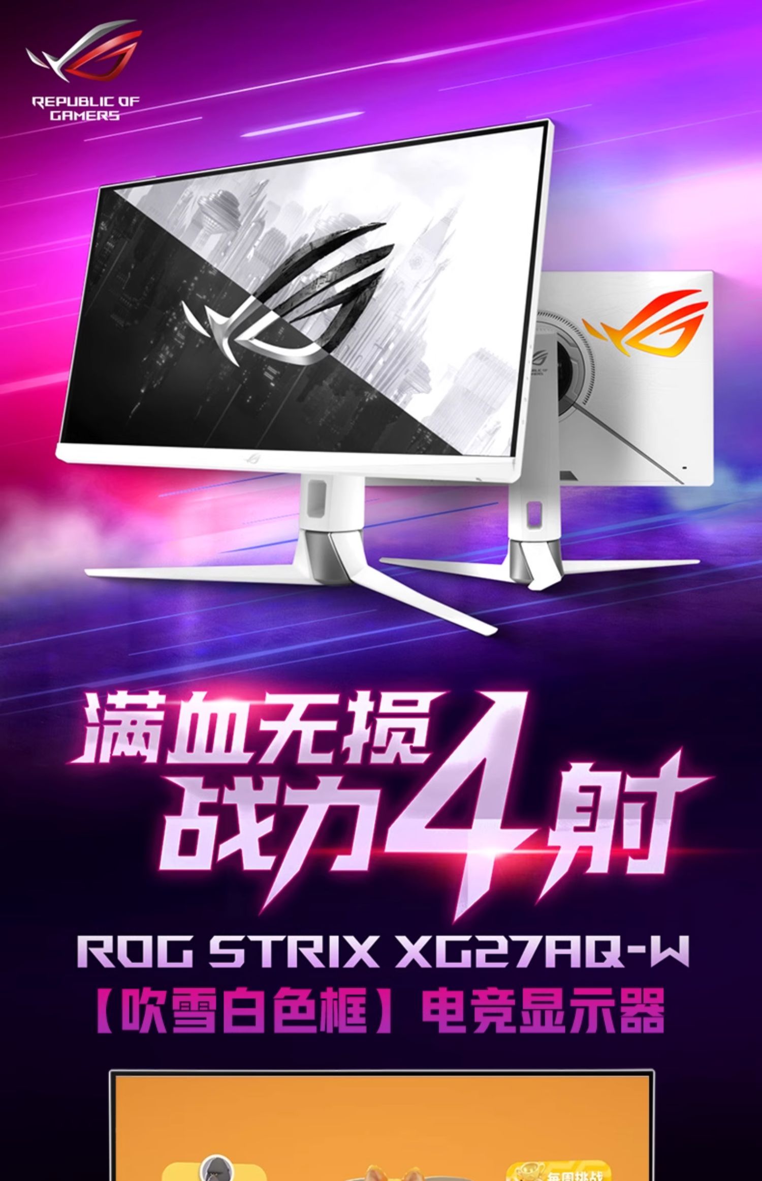 ROG华硕2K显示器吹雪白27英寸IPS小金刚210Hz电脑游戏电竞显示屏