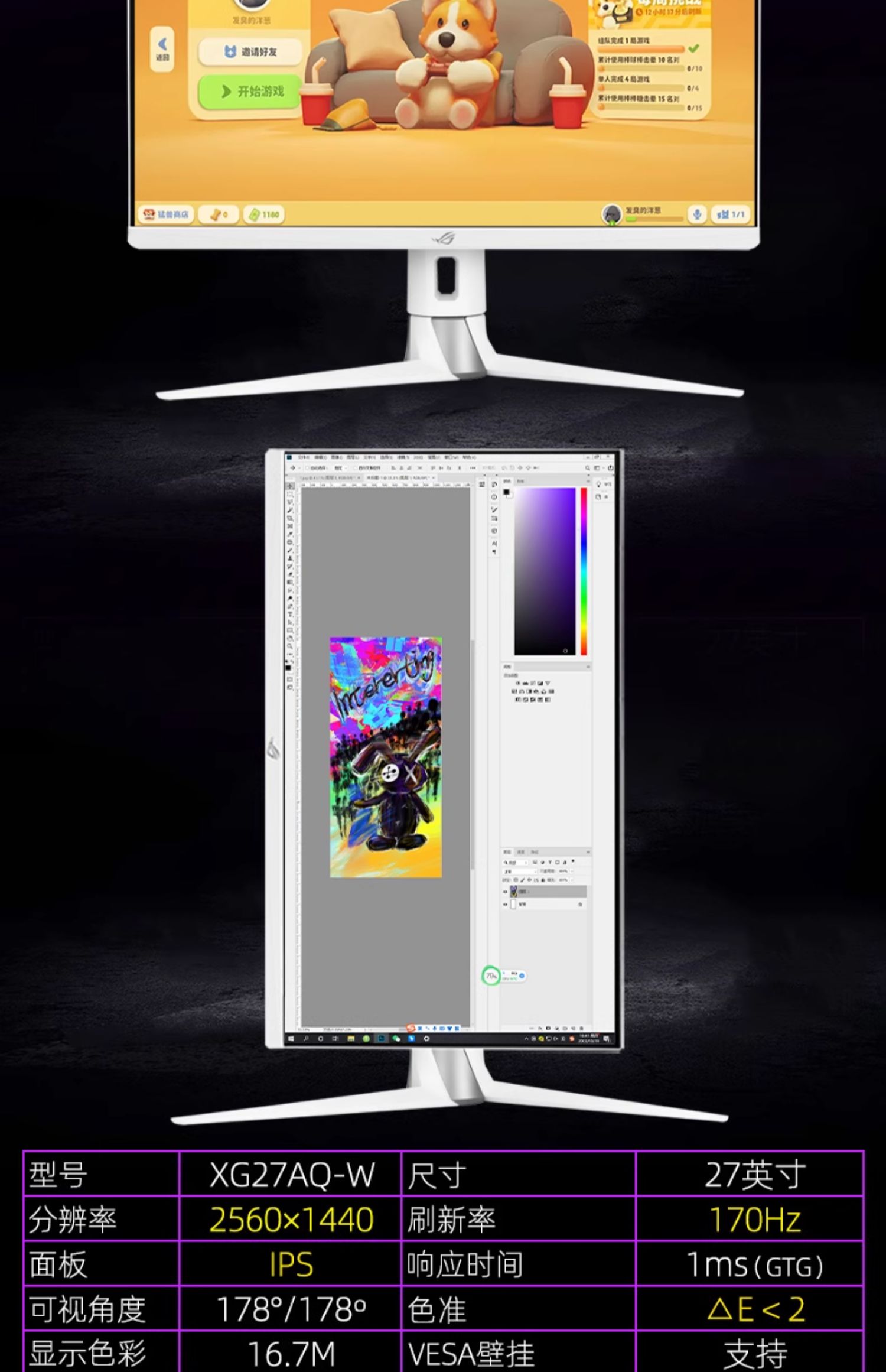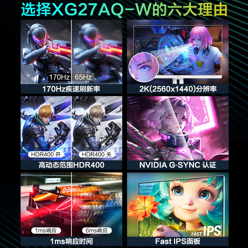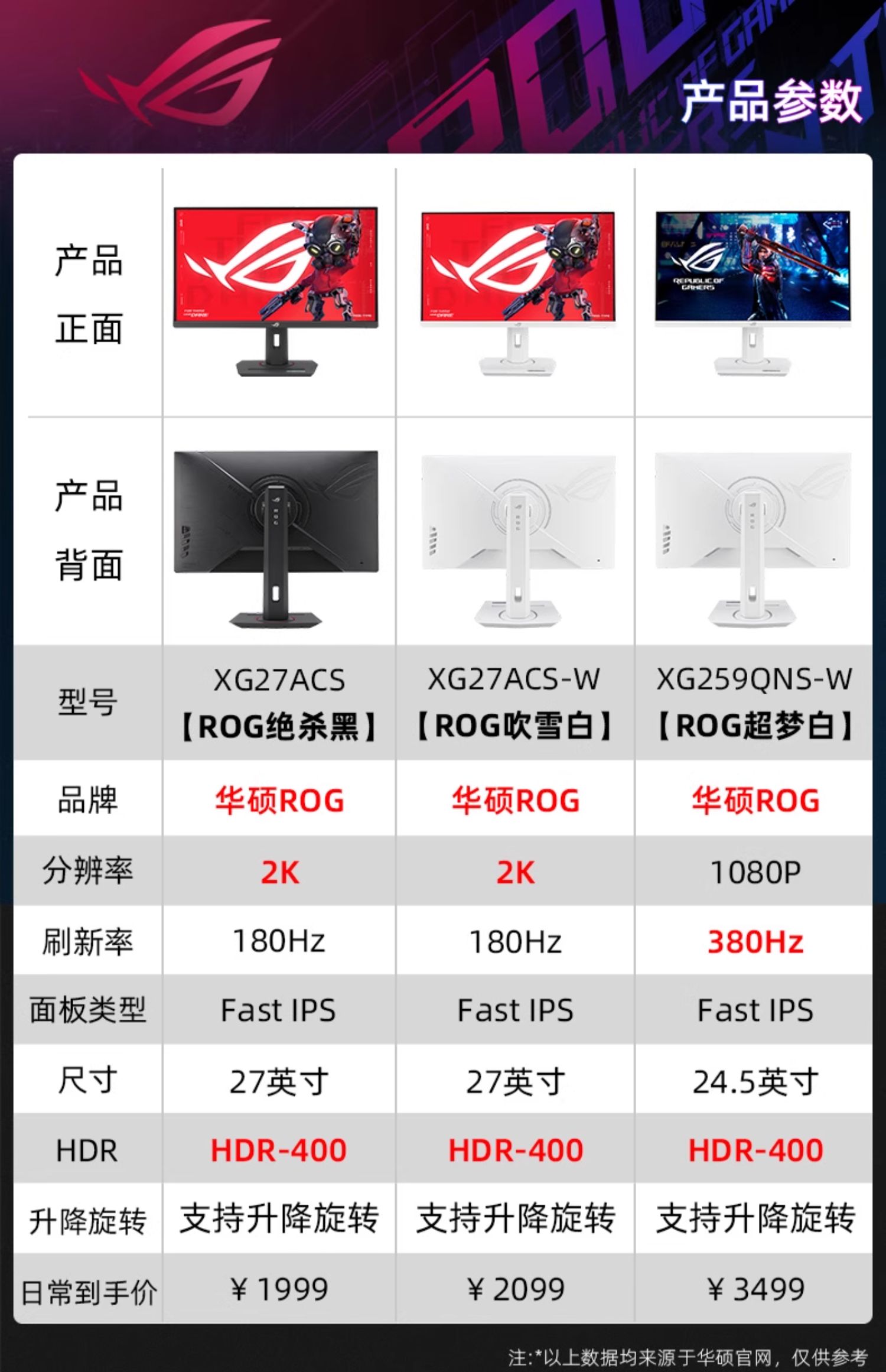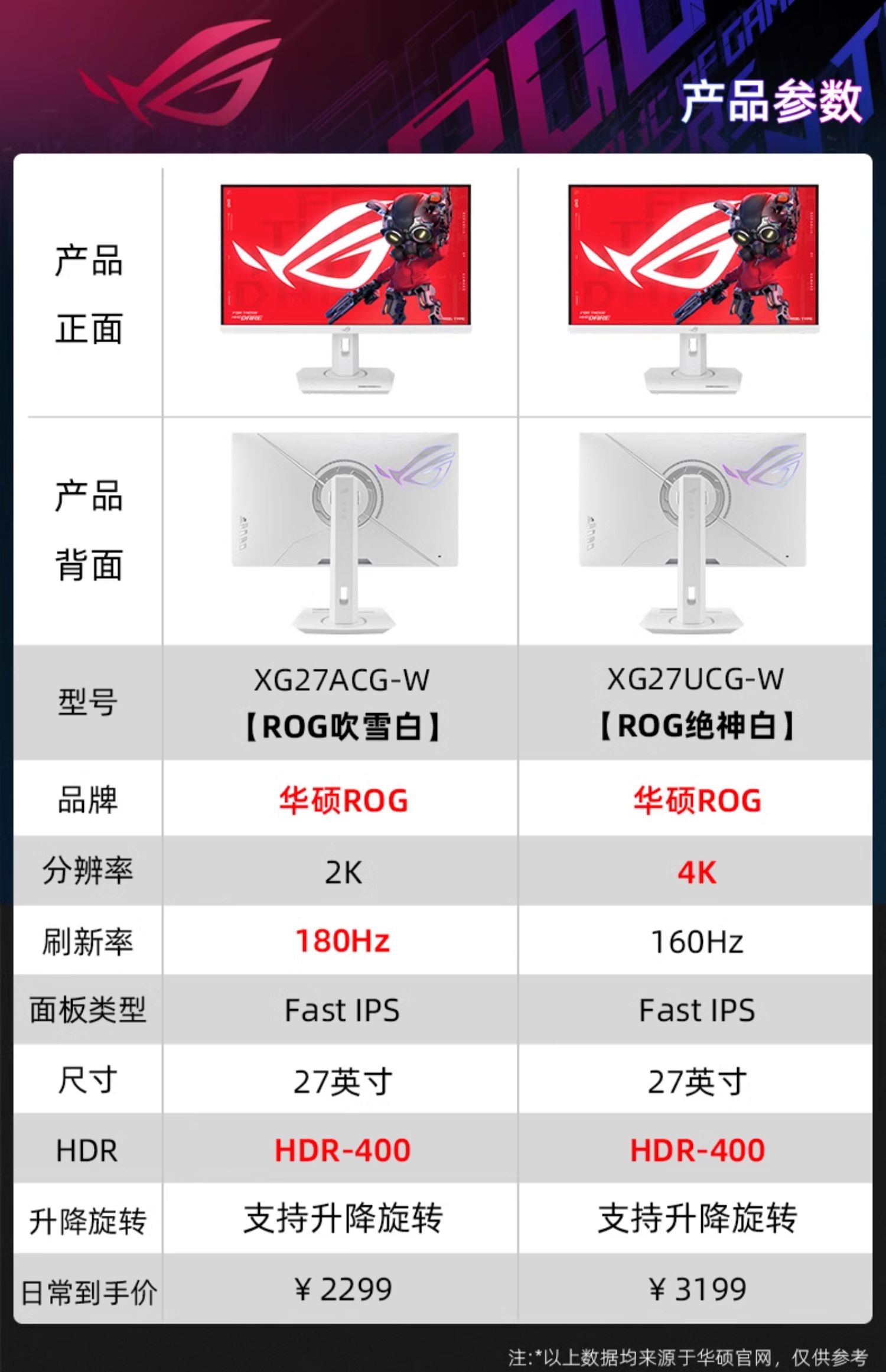 ROG华硕2K显示器吹雪白27英寸IPS小金刚210Hz电脑游戏电竞显示屏