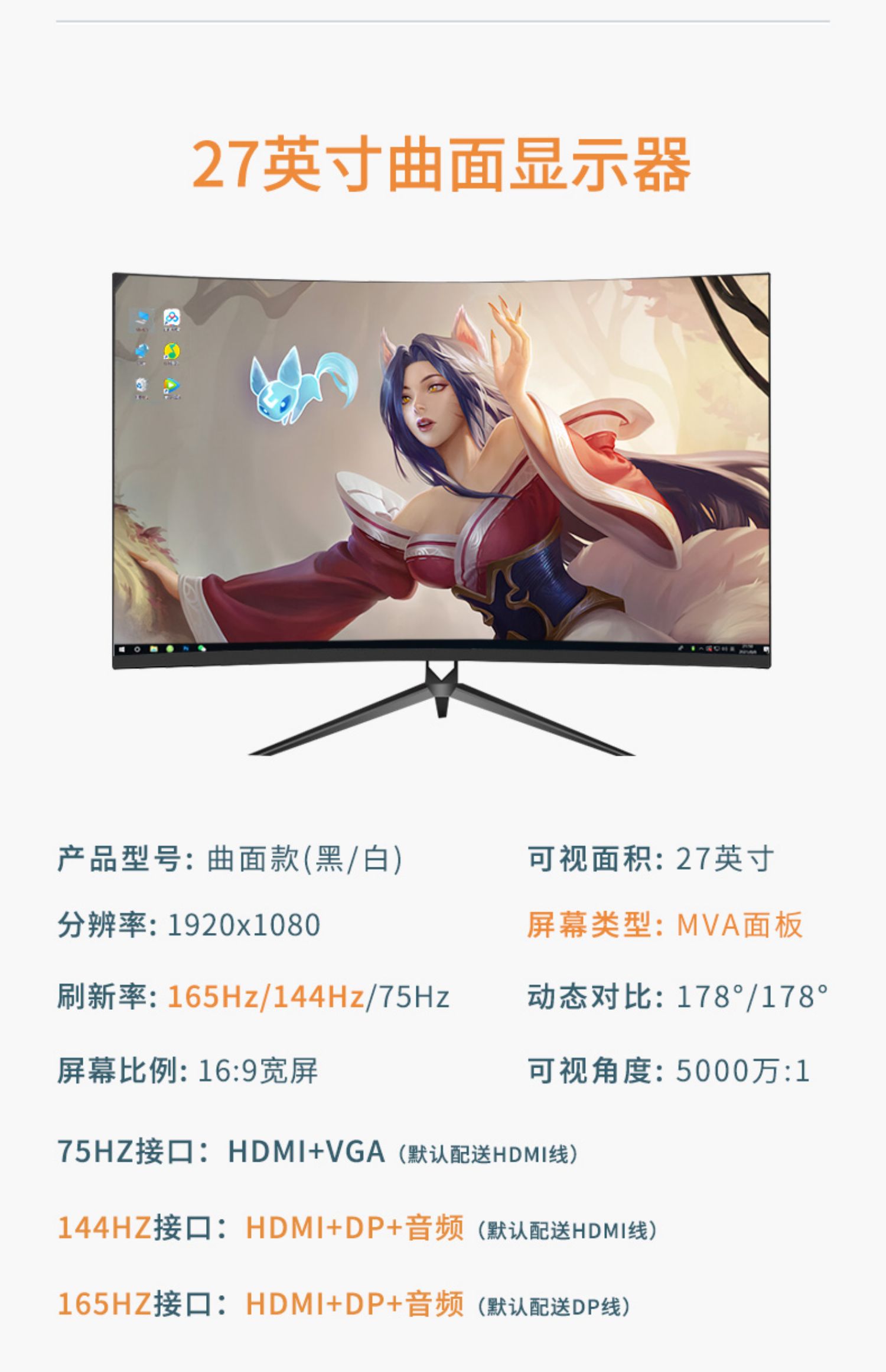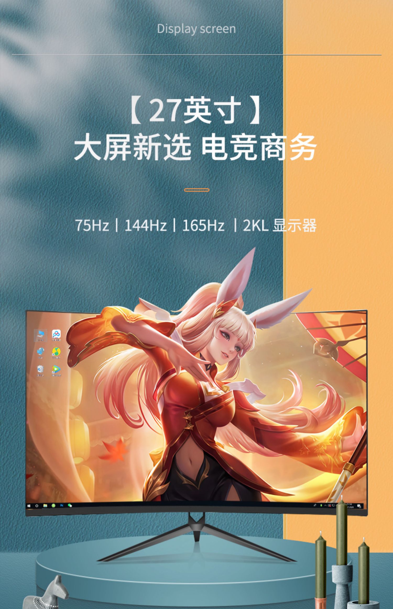 灵蛇27英寸曲面显示器超薄高清2K144hz游戏台式IPS电脑液晶屏幕32
