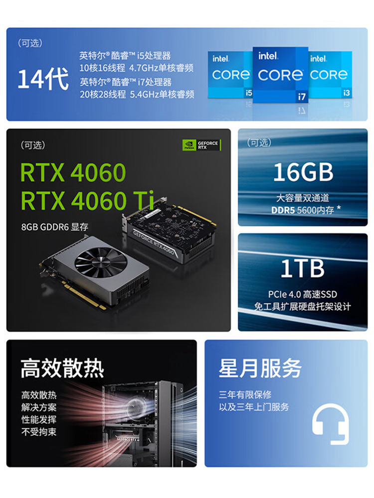 联想台式电脑GeekPro 酷睿i5/i7-14700F高配独显家用办公电竞游戏台式电脑主机制图设计师台式机电脑整机全套