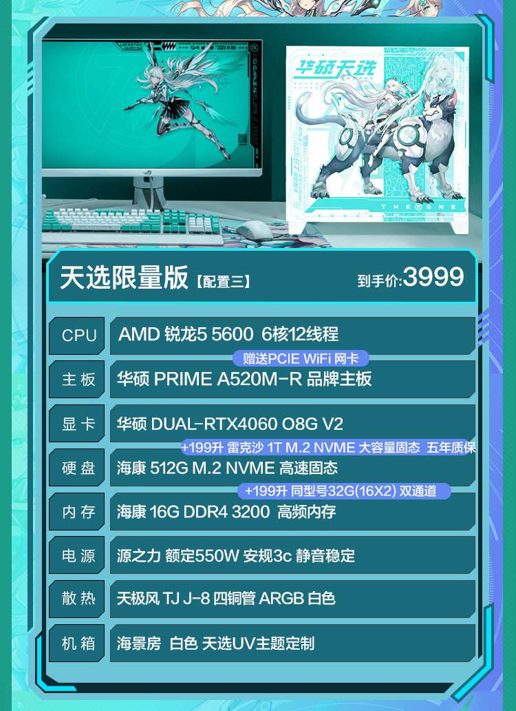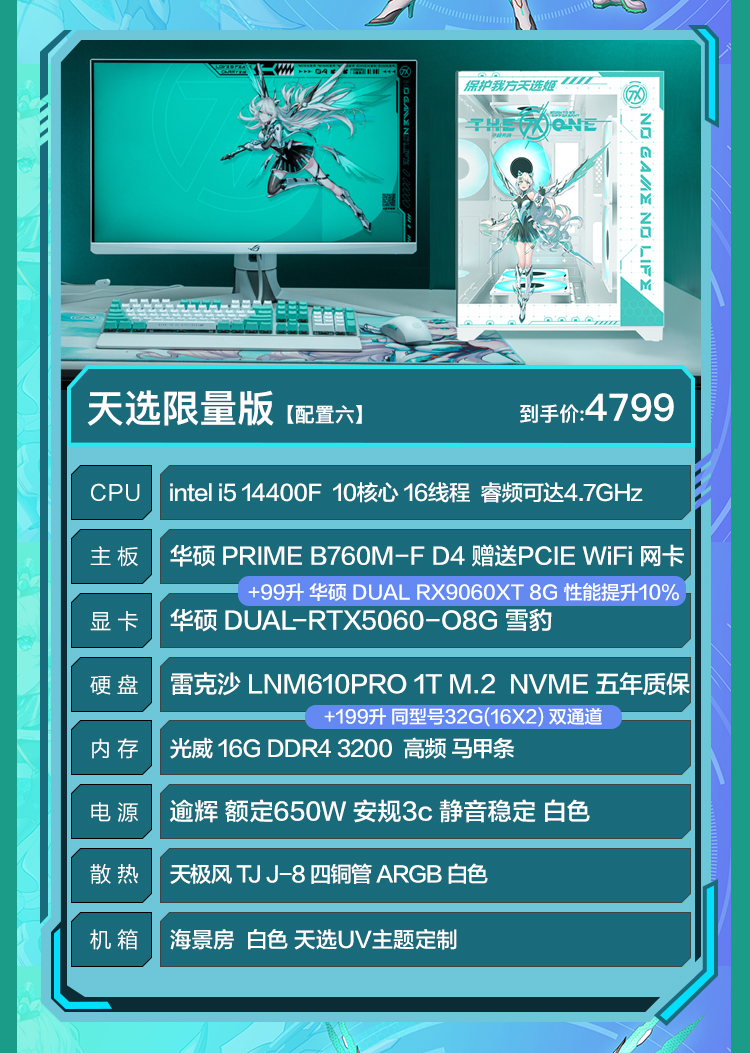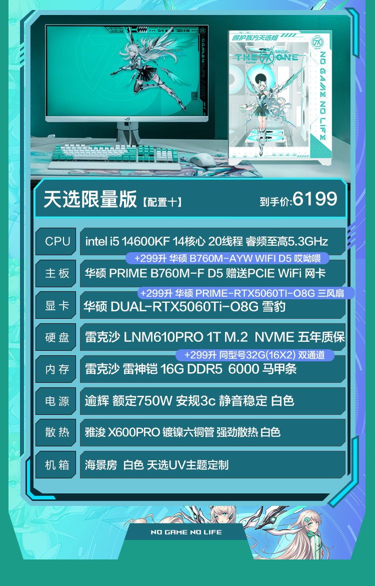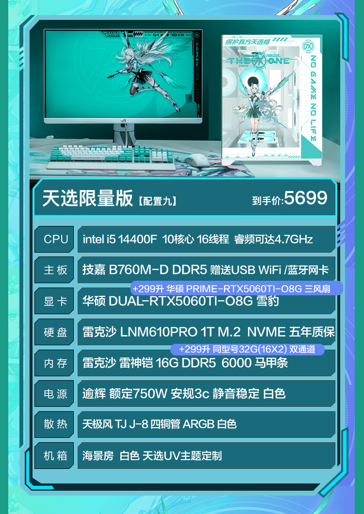 华硕i5 14600KF/RTX4060主机5060TI电脑游戏直播设计台式组装整机