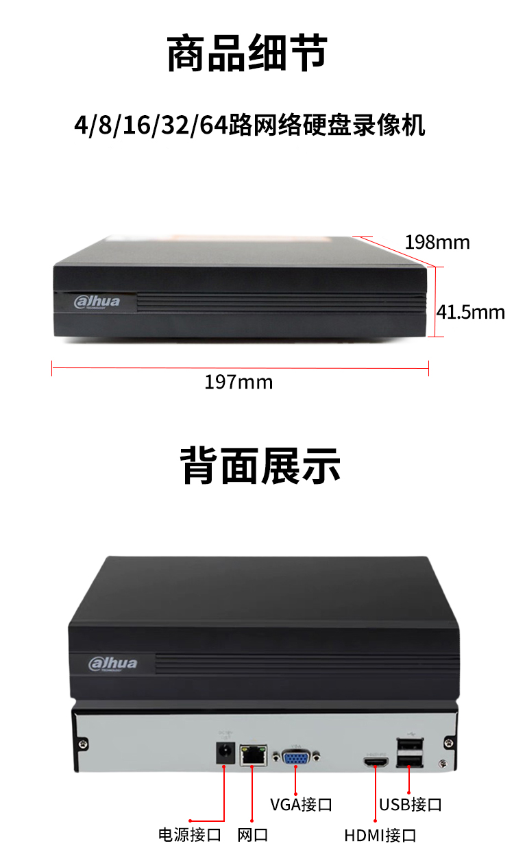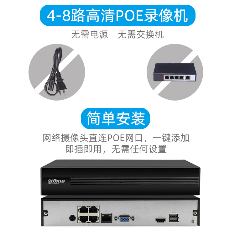 大华4/8/16/32路网络高清硬盘录像机NVR家用手机远程H265监控主机