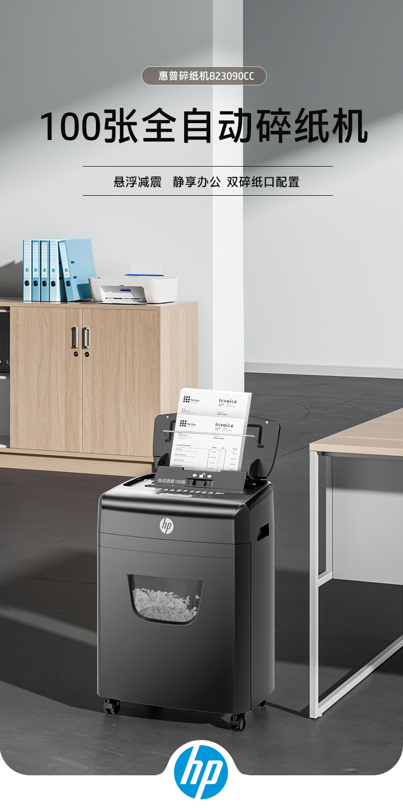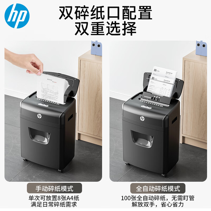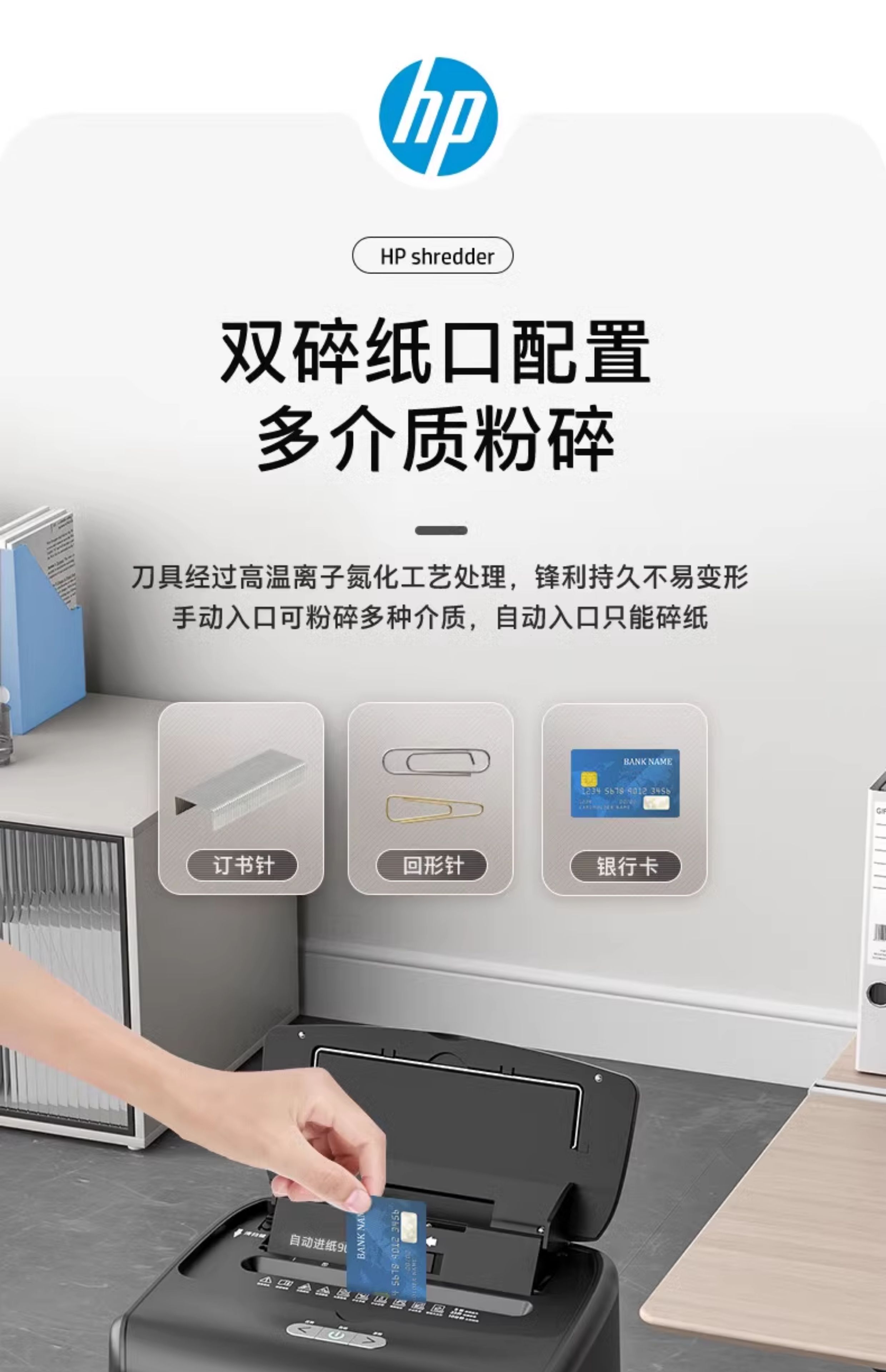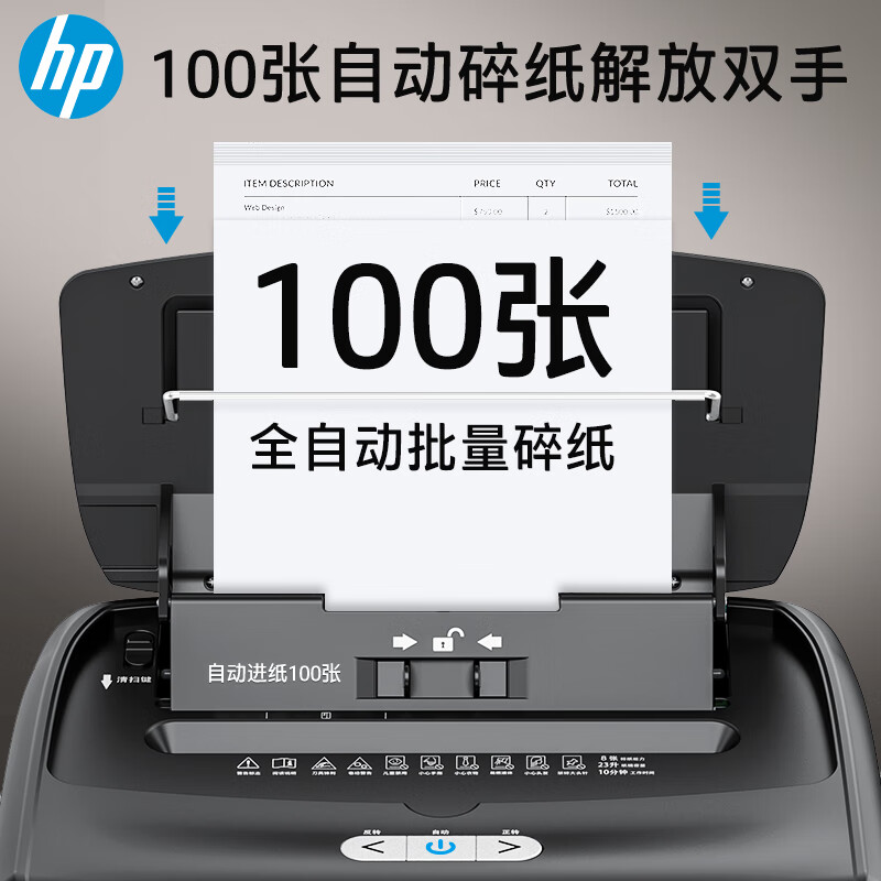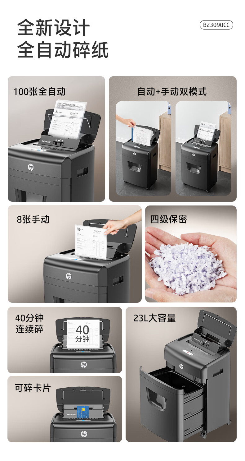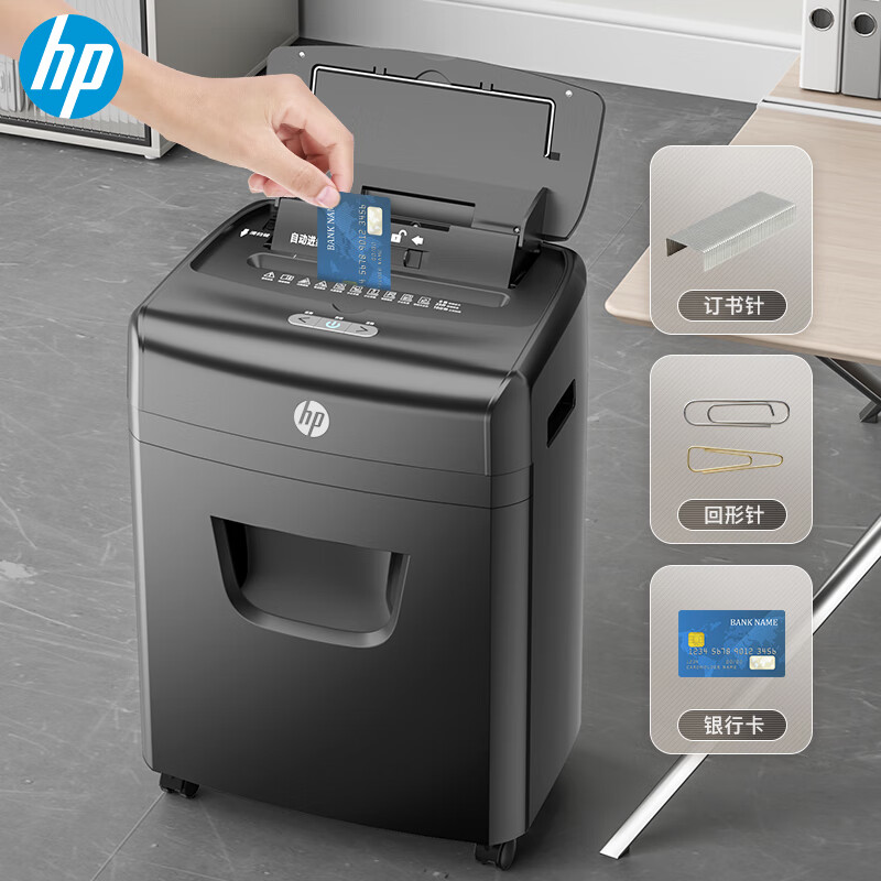 HP惠普全自动碎纸机大型160张商用粉碎机可碎卡钉办公室专用容量