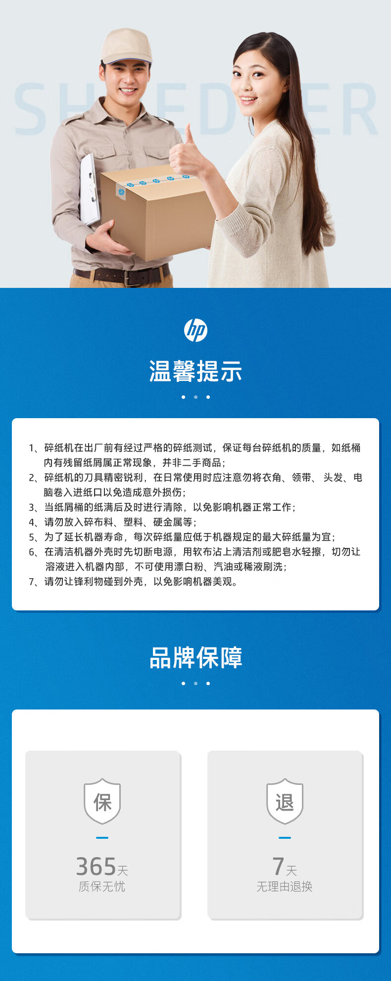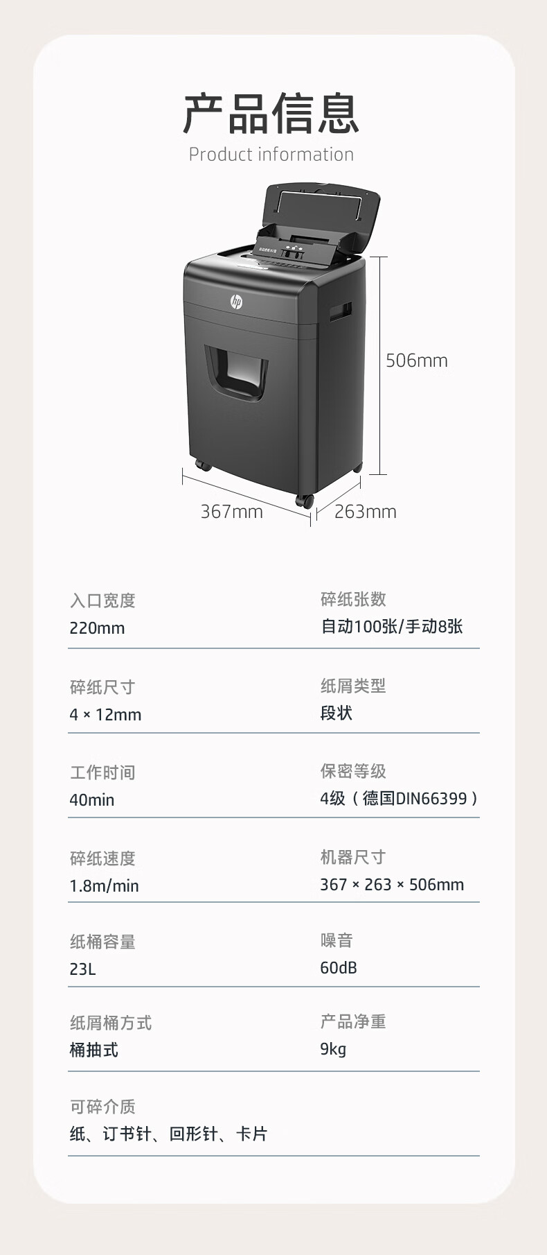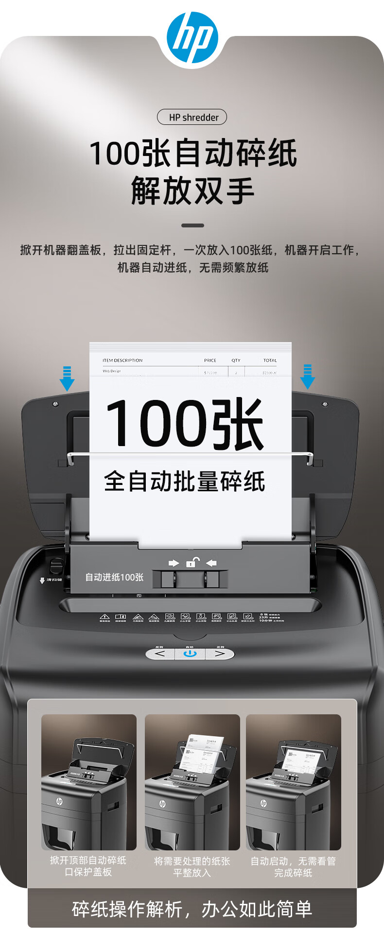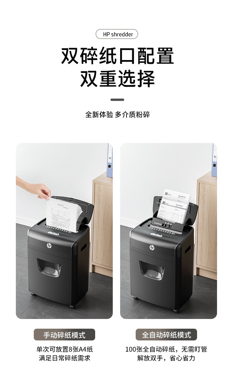 HP惠普全自动碎纸机大型160张商用粉碎机可碎卡钉办公室专用容量