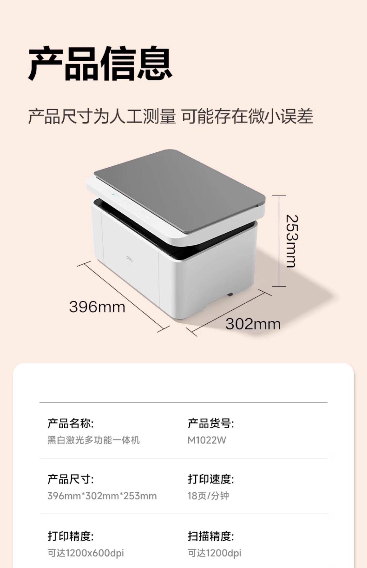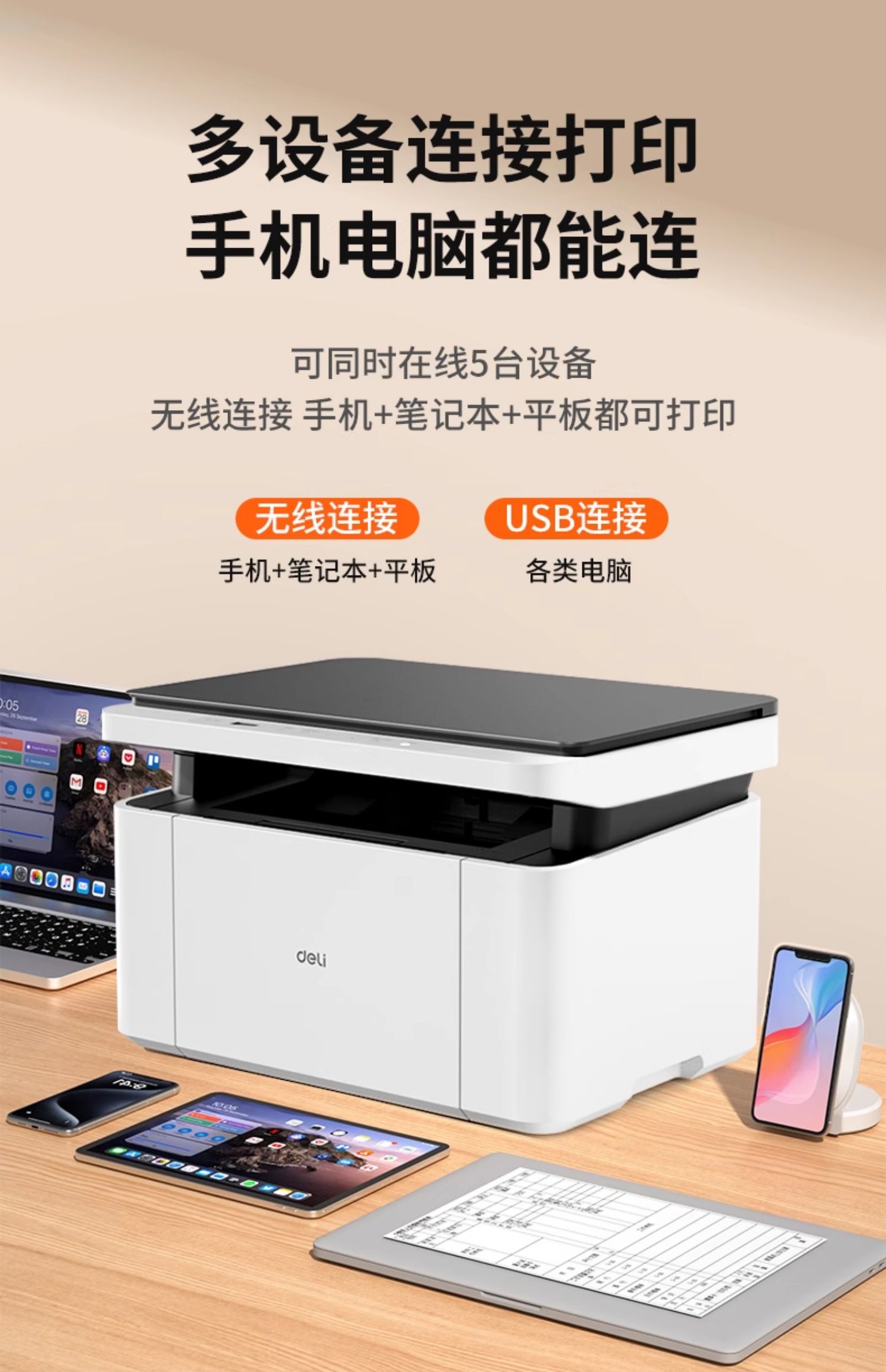 得力M2000dw黑白激光打印机自动双面复印扫描一体机A4打印机办公专用网络手机无线wifi家用小型多功能三合一