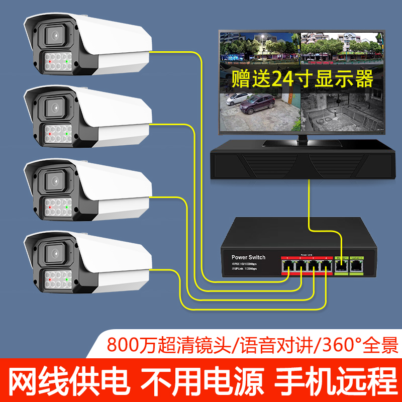 商用POE有线录像机全套监控器设备套装高清夜视摄像头室内外超市