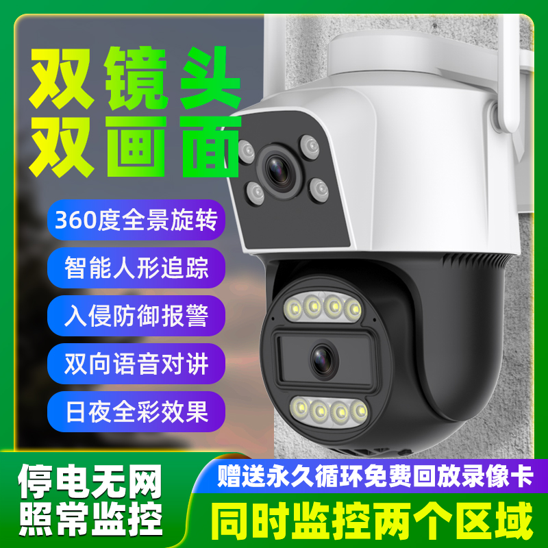摄像头360度无死角无线家用手机远程4G高清室外三画面监控器摄影